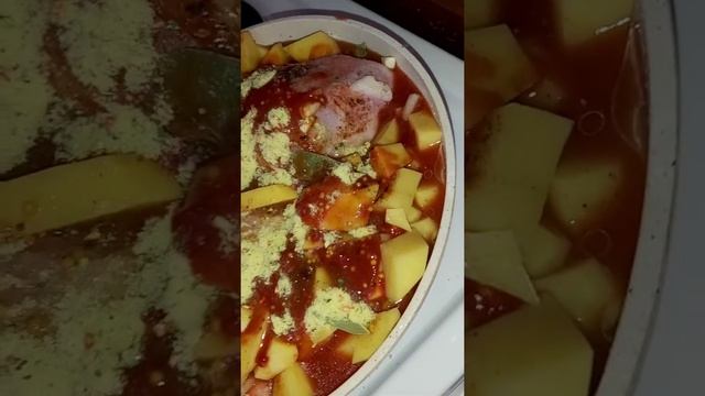 тушёная картошка с курицей на сковородке