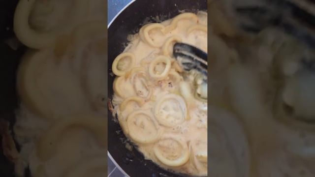 Кальмары в сливочном соусе.