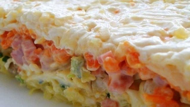Слоеный салат с грибами. Рецепт.