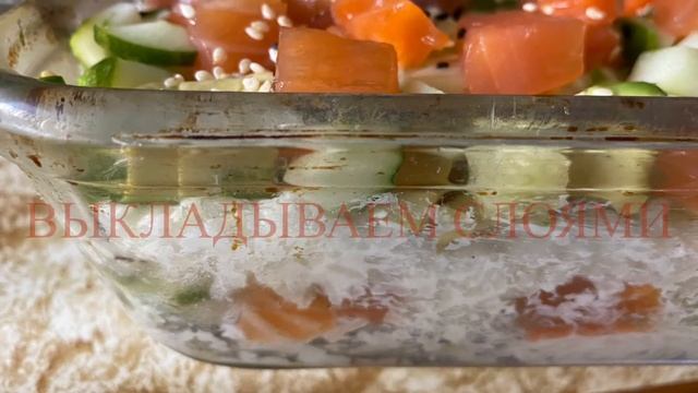 Салат суши с красной рыбай! Лёгкий рецепт .Sushi salad.
