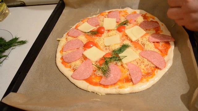 #food #Пицца Домашняя пицца с грибами и колбасой