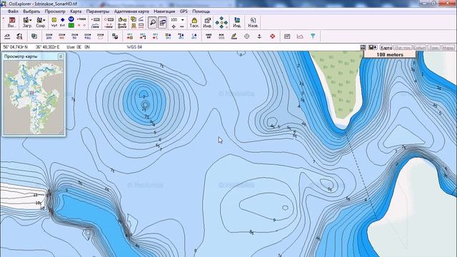 Карта глубин Истринского водохранилища SonarHD для OziExplorer