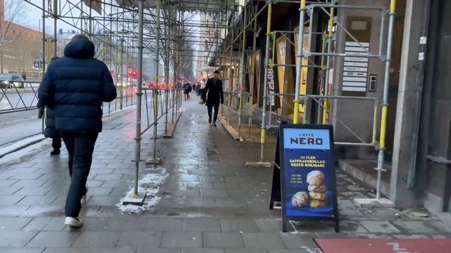 Stockholm Walks: Sveavägen. Street life on a grey winter afternoon. City sounds. [4k 60 fps]