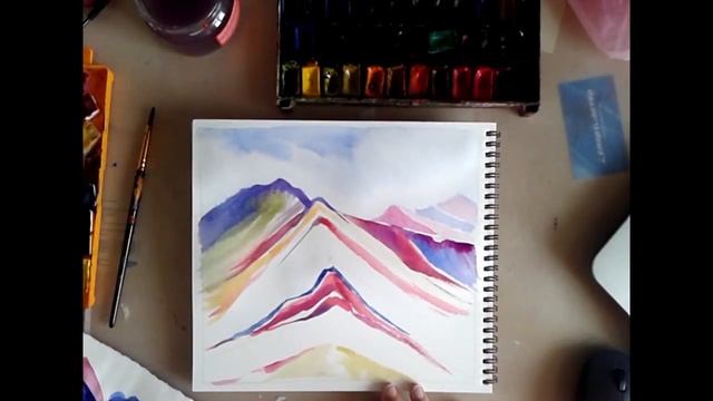 ПЕРУ - РАДУЖНЫЕ ГОРЫ - акварельный пейзаж