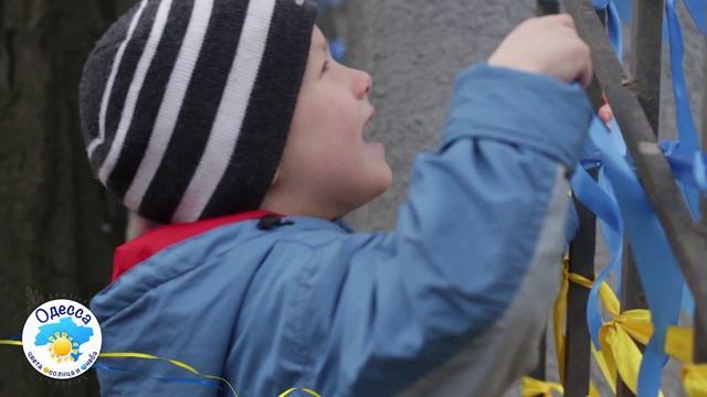 Флешмоб "Одень Одессу в цвета Солнца и Неба" на железнодорожном вокзале Одессы