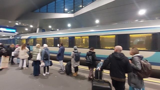 EC 149 "Hortobagy" (Wien - Zahony with 2 sleeping cars to Kyiv) arriving at the platform at Wien Hb