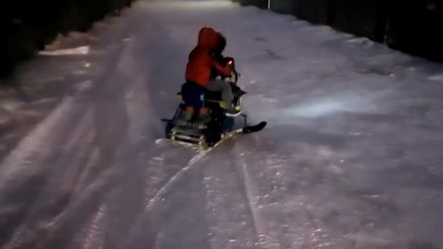 Детский электрический снегоход. Первый выезд.
