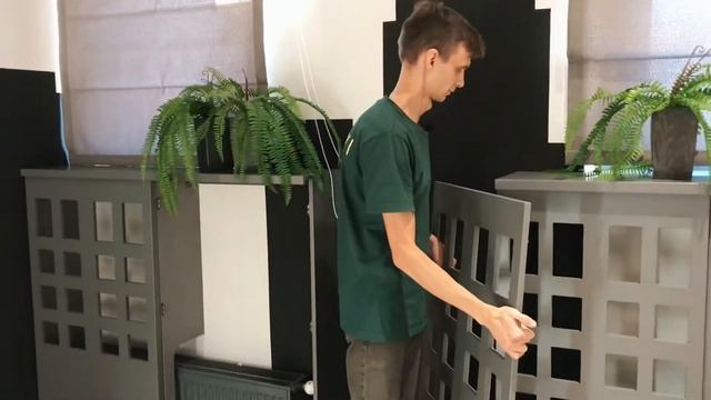 Экран на радиатор в виде домиков в офис продаж Ольховский парк