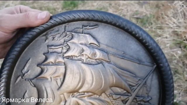 Барельеф из высокопрочного гипса "Парусник". Гипсовое литьё.