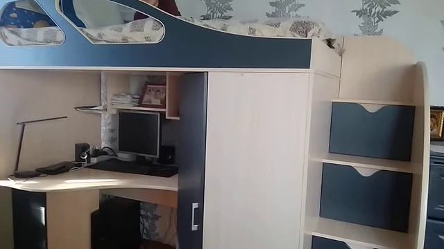 Одноместная кровать-чердак со шкафом и большим столом КЧО 164