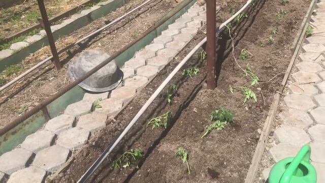 Капельный полив на грядках. Высадка рассады помидор.