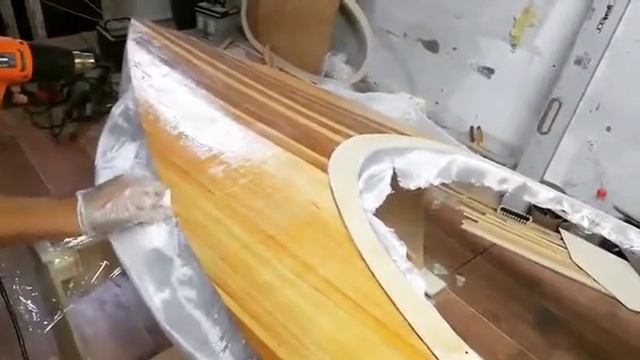 Изготовление каяка из дерева. Нанесение стекловолокна
