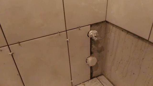 Ремонт. Ванная. Укладка плитки. Последние плитки на стенах - подрезка к полу.