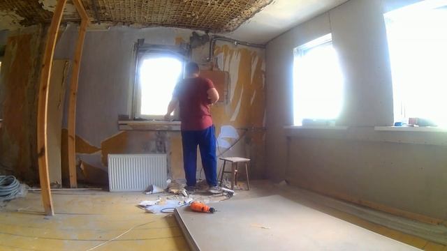 Ремонт. Обшивают стену. Делают закладную под телевизор.
