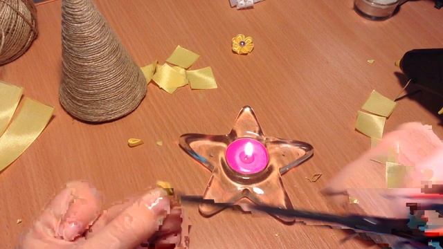 Новогодняя елка из шпагата с цветами канзаши