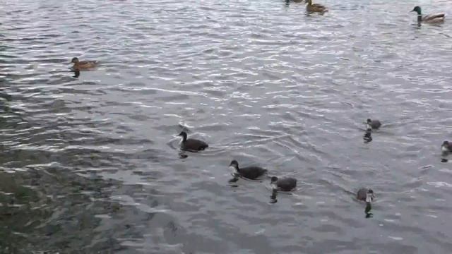 Семейство лысух в Коммунаре. Утка лысуха и ее утята.