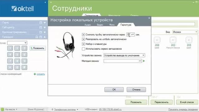 Работа с клиентским приложением Oktell. Настройка гарнитуры