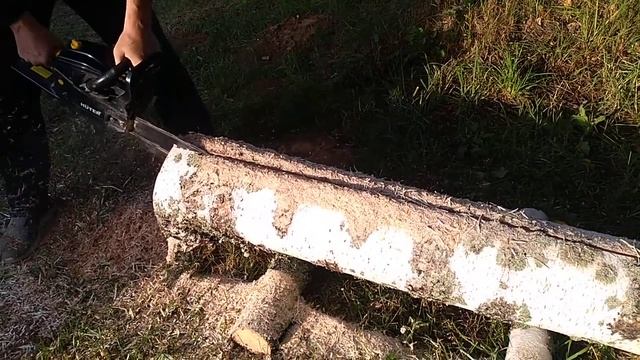 Бензопила HUTER BS-62, пилим берёзу вдоль.