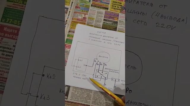 СХЕМА ПОДКЛЮЧЕНИЯ ДВИГАТЕЛЯ ОТ СТИРАЛЬНОЙ МАШИНЫ (4 вывода) С РЕВЕРСОМ В СЕТЬ 220 ВОЛЬТ