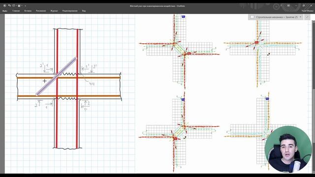 Примыкание межэтажного ригеля к колонне. Жёсткий узел. Армирование