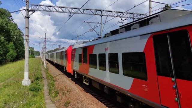 Электропоезд ЭС2Г-010+ЭС2Г-020 «Ласточка», о.п. Ушково, г.СПб, 15.07.2023г.(4K UHD)