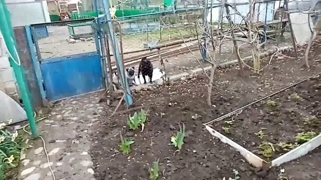 Новая плита. Земля затягивает. Тыква в мешке, удобрения и лейка. Просто Константиновы.