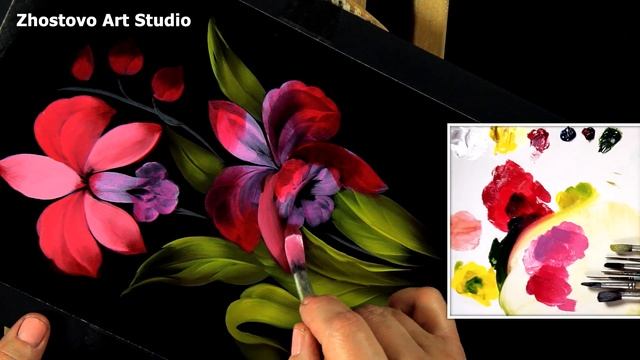 Как нарисовать Цветы Каттлея. Мастер-класс от Художника из Жостово Ларисы Гончаровой