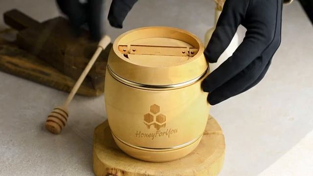 Деревянный бочонок с мёдом HoneyForYou, 1 кг. Обзор.