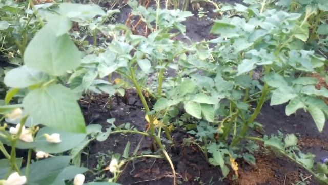 Картошка под мульчей на тёплой грядке The potatoes under the mulch on a warm bed