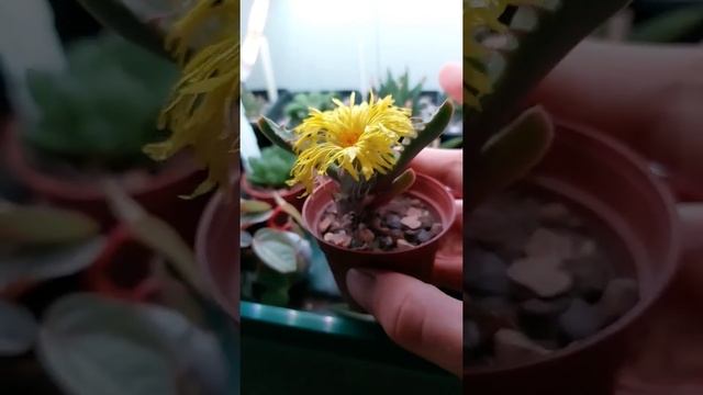 Flower on faucaria tigrina (tiger jaws) plant