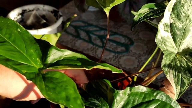 Комнатные растения, сингониум Империал (Imperial White), перевалка, добавляем пышности