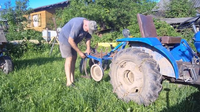 Китайский минитрактор, раздвигаю колею, опахиваю картофель самодельный окучник