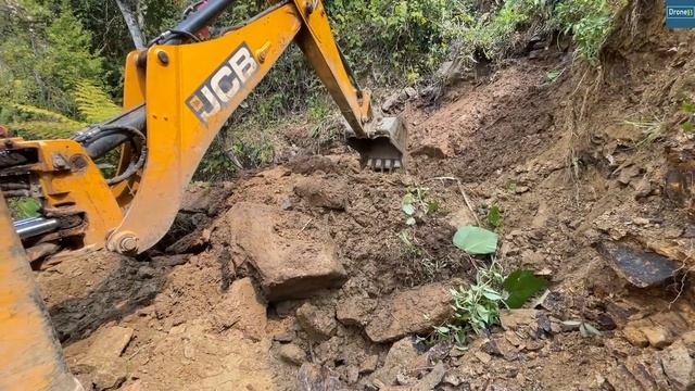 Wet and Stony-New Hilly Road Construction with Jcb Backhoe