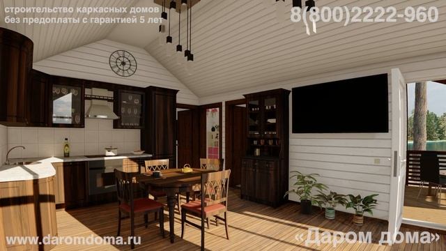 Проект дома с террасой, с 3 спальнями, кухней-гостиной с высокими потолками, ванной и котельной