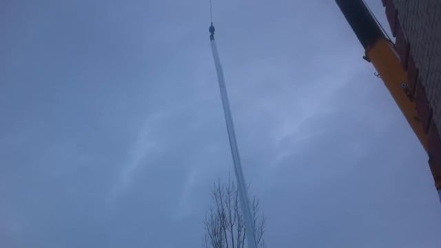 Дымоходная труба длинной в 15 метров- установка дымоходной трубы краном.