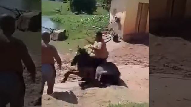 Жирный "УРОД" садиться на лошадь...