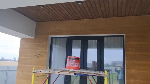 Утеплённый дом и цементная фактура под дерево