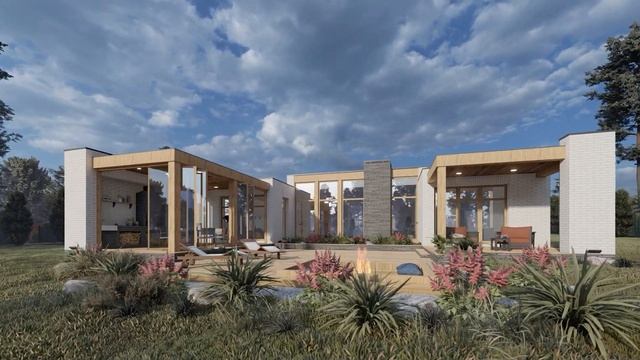Проект современного одноэтажного дома с плоской кровлей.