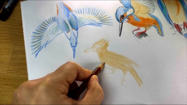 Как рисовать птиц. Наброски птицы Зимородок.