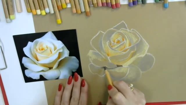 Рисуем пастельными карандашами цветок розу.