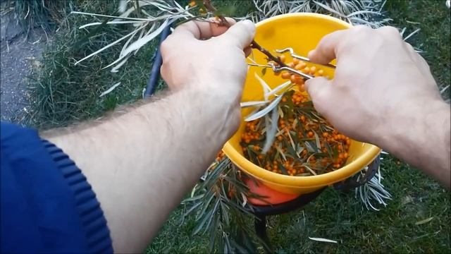 Как быстро собрать облепиху с помощью скребка