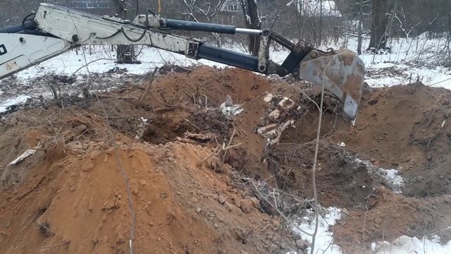 Корчевание пней трактором.