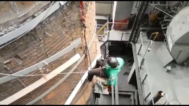 монтаж поясов на дым трубу РУСАЛ