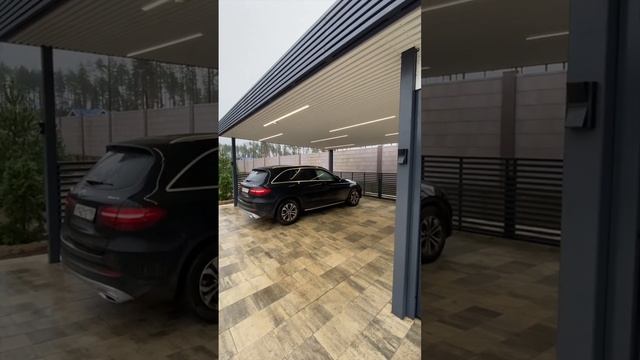 Современный навес на два автомобиля с хозблоком #shorts