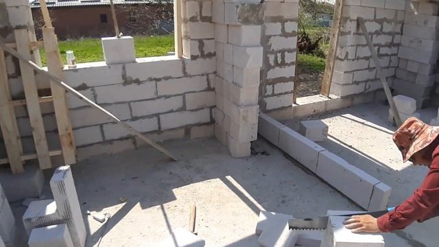 Обзор строительства дома из газоблока. Монолитное перекрытие.