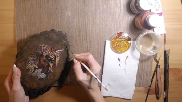 Декупаж на деревянном спиле, с прорисовкой акрилом и контуром. DIY. Decoupage of a wooden panel.