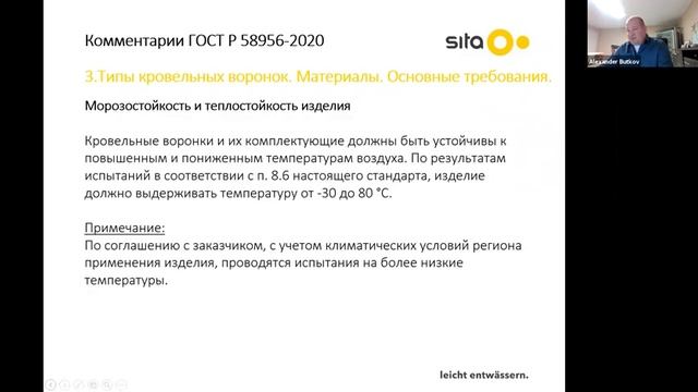 Вебинар: «Комментарии к новому ГОСТ Р 58956-2020 «Воронки кровельные для внутренних водостоков»