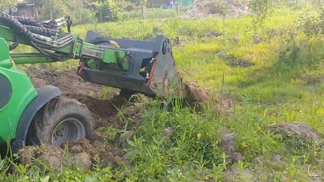 Мини-погрузчик Avant. Снятие верхнего слоя грунта и выравнивание участка