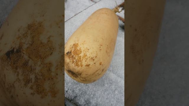На верстаке снег и кабачок сорта Грибовский 37 большой, раз так холодно, то семена извлекать не буд