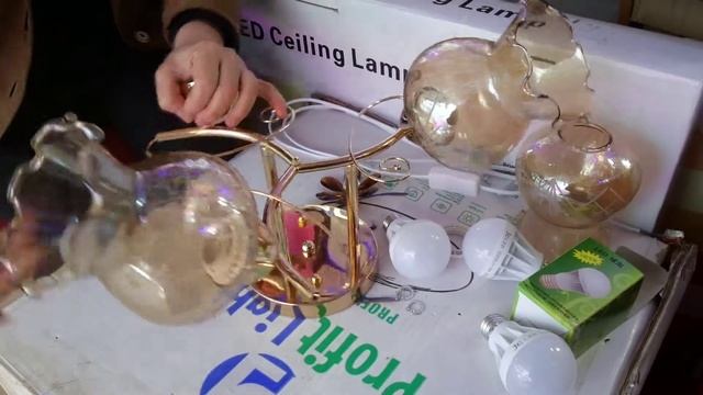СОБИРАЕМ ПОДКЛЮЧАЕМ ЛЮСТРУ 3 ЛАМПЫ 3 ПРОЗРАЧНЫХ ПЛАФОНА!